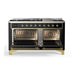 ILVE 60" Majestic II Dual Fuel Range 9 Burner Griddle Glossy Black Brass NG UM15FDNS3BKG + AMC150