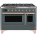 Ilve Majestic II Collection UM12FDNS3BGPLP 48 Inch Freestanding Dual Fuel Range with 8 Sealed Burners, 5.02 cu. ft. Total Capacity, Warming Drawer, and Griddle: Blue Grey, Copper Trim - LP