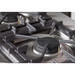 - Continuous cast-iron grates let you slide pots easily on and off heat, or from one burner to another.