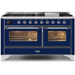 Ilve Majestic II Collection UM15FDNS3MBCLP 60 Inch Freestanding Dual Fuel Range with 9 Sealed Burners, 5.8 cu. ft. Total Capacity, Warming Drawer, Fast Pre-Heat, Griddle, Sabbath Mode and STAR-K Certified: Midnight Blue, Chrome Trim - LP