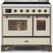 Ilve Majestic II Collection UMDI10NS3AWB 40 Inch Freestanding Induction Range with 6 Element Burners, Double Oven, 3.82 Cu. Ft. Total Capacity, Warming Drawer, and Self-Clean: Antique White, Burnished Trim