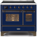 Ilve Majestic II Collection UMDI10NS3MBB 40 Inch Freestanding Induction Range with 6 Element Burners, Double Oven, 3.82 Cu. Ft. Total Capacity, Warming Drawer, and Self-Clean: Midnight Blue, Burnished Trim