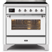 Ilve Majestic II Collection UMI09NS3WHC 36 Inch Freestanding Electric Induction Range with 5 Elements, 3.5 Cu. Ft. Capacity, Warming Drawer, Self-Clean, and Fast Pre-Heat: White, Chrome Trim