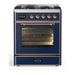 ILVE UM30DNE3MBP Majestic II 30 inch Dual Fuel Range with 5 Black Brass Burners (Natural Gas, Triple Glass Door, Midnight Blue, Copper)