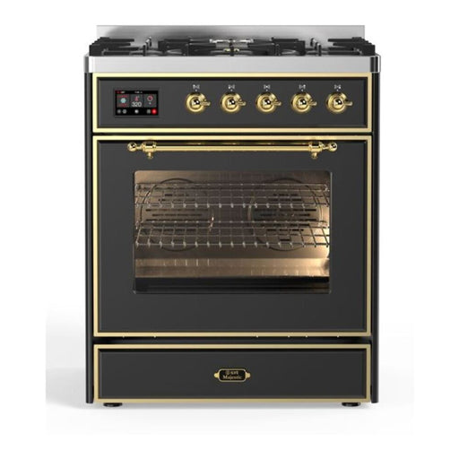 IlveDescription The ILVE Majestic II 30” Dual Fuel Range in Graphite Matte with Brass trim delivers refined European craftsmanship in a compact, high-p...