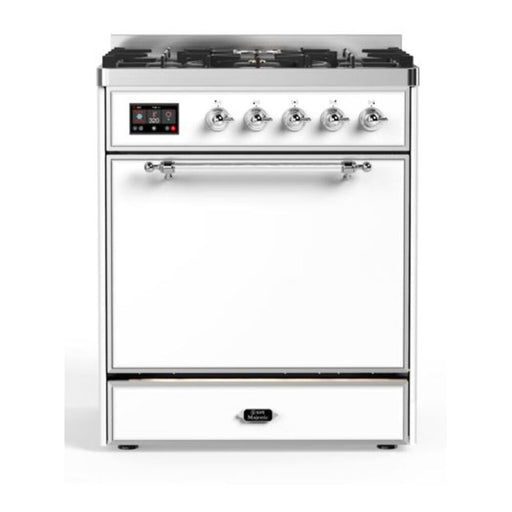 IlveDescription The ILVE Majestic II 30” Dual Fuel Range in White with Chrome trim blends timeless design with professional-grade performance in a comp...