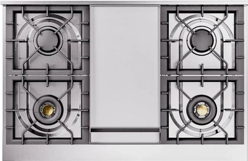 Ilve40 Inch Freestanding Dual Fuel Range with 5 Sealed BurnersThis 40" Italian dual fuel range by Ilve comes with 5 sealed brass burners, griddle, and...
